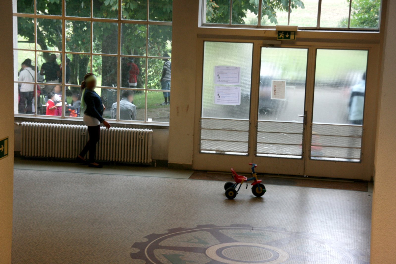 C’était à la base une salle de conférence. Depuis six mois environ, cette pièce au rez-de-chaussée a été transformée en dortoir, segmentée par des paravents censés offrir un semblant d’intimité. Ici ou là, des habits sont suspendus sur ces cloisons derrière lesquelles on aperçoit des lits et, parfois, une petite table encombrée d’ustensiles de cuisine. […]