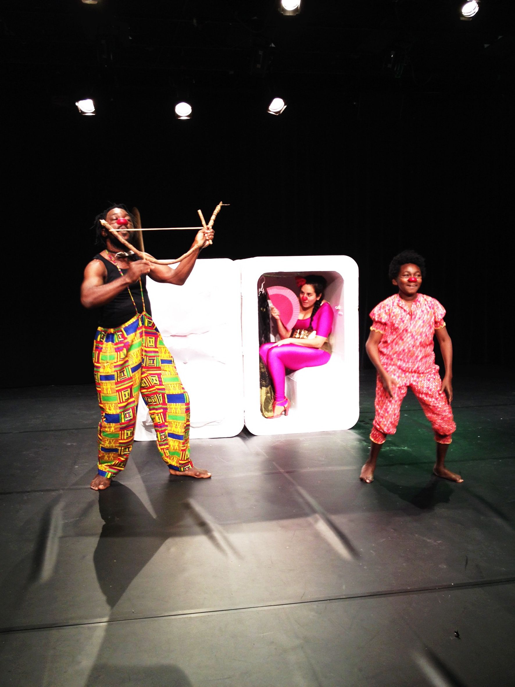 Esther Rizzo (au centre) et le tandem ivoirien Fidèle Baïbo Baha et Hyacinthe Brika Zougbo dans Famille Boutabou. DR