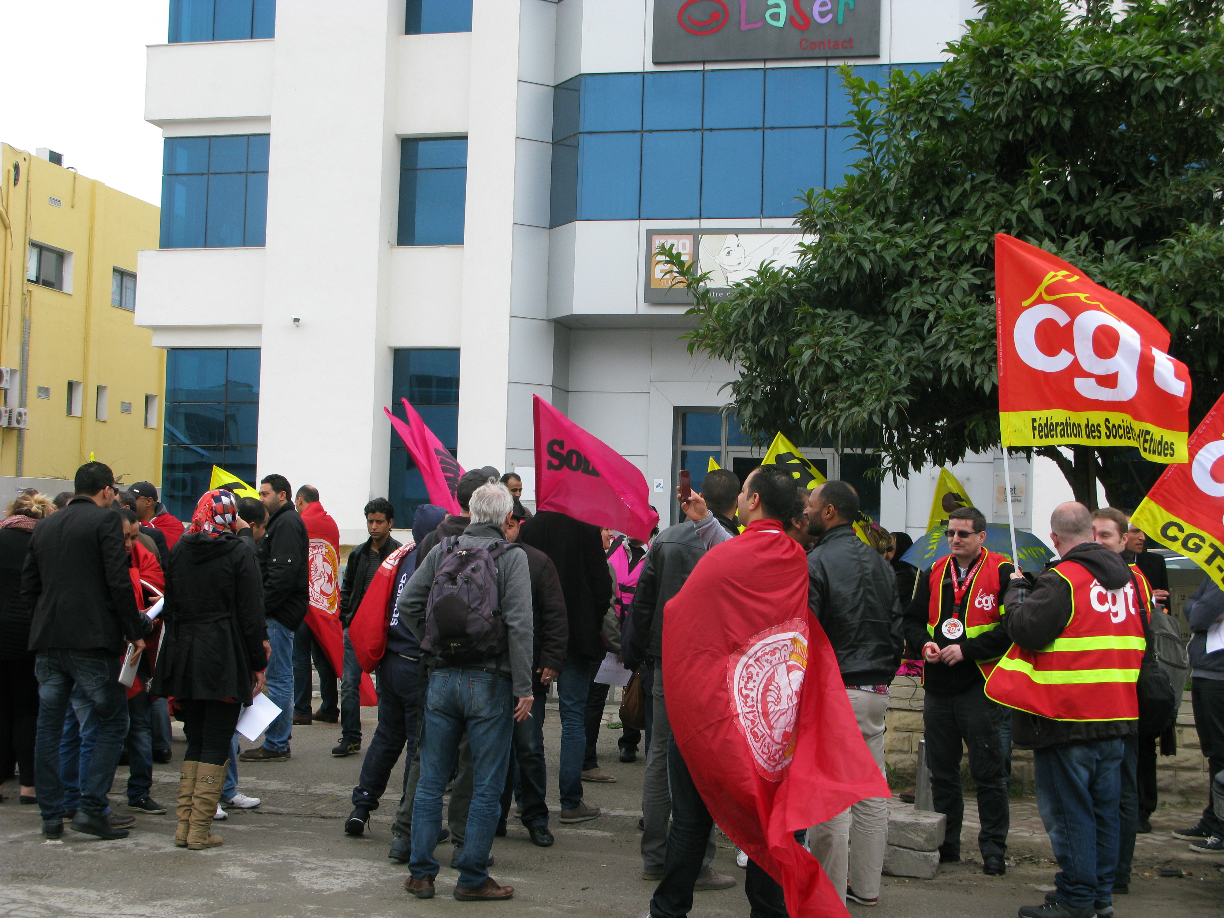 La centaine de manifestants bruyants et colorés tranche dans la grisaille du matin tunisois. Charguia 2, lointaine banlieue industrielle de la capitale, ne s’effarouche pourtant guère de la présence syndicale devant le siège tunisien de la société française Armatis Laser Contact (ALC), sous-traitante de Bouygues Telecom et des Pages Jaunes. Le secteur des centres d’appels téléphoniques […]