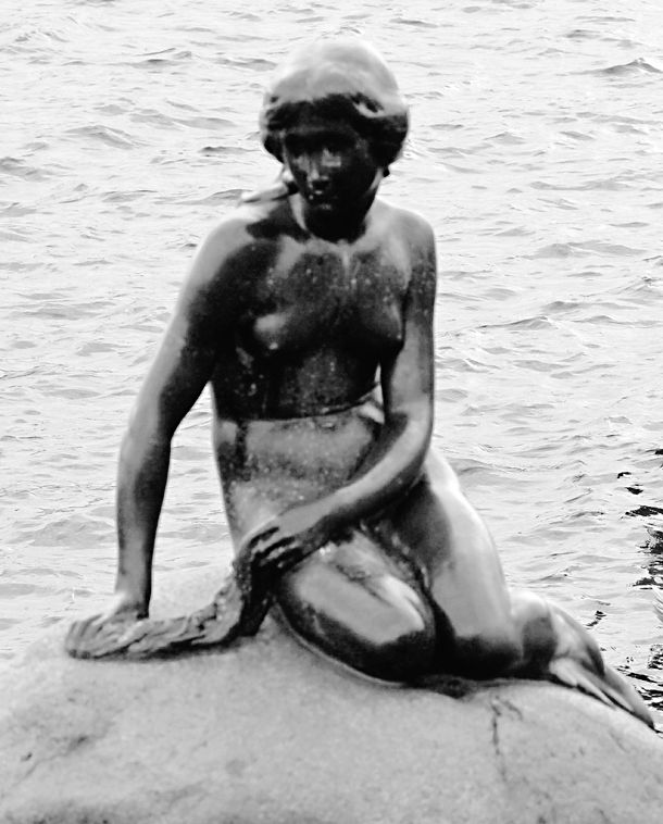 Copenhagen's famous statue of the Little Mermaid, left, is backdropped by 'The Survival of the Fattest' a sculpture created by Danish artist Jens Galschiot in Copenhagen,Tuesday Dec. 8, 2009. The sculpture represents an overweight Lady Justice figure, symbolizing the rich industrialized world, sitting on the back of a thin worn-out African man.The largest and most important UN climate change conference is into its second day with organizers warning diplomats from 192 nations that this could be the best, last chance for a deal to protect the world from calamitous global warming. (KEYSTONE/AP Photo/Peter Dejong)Danemark