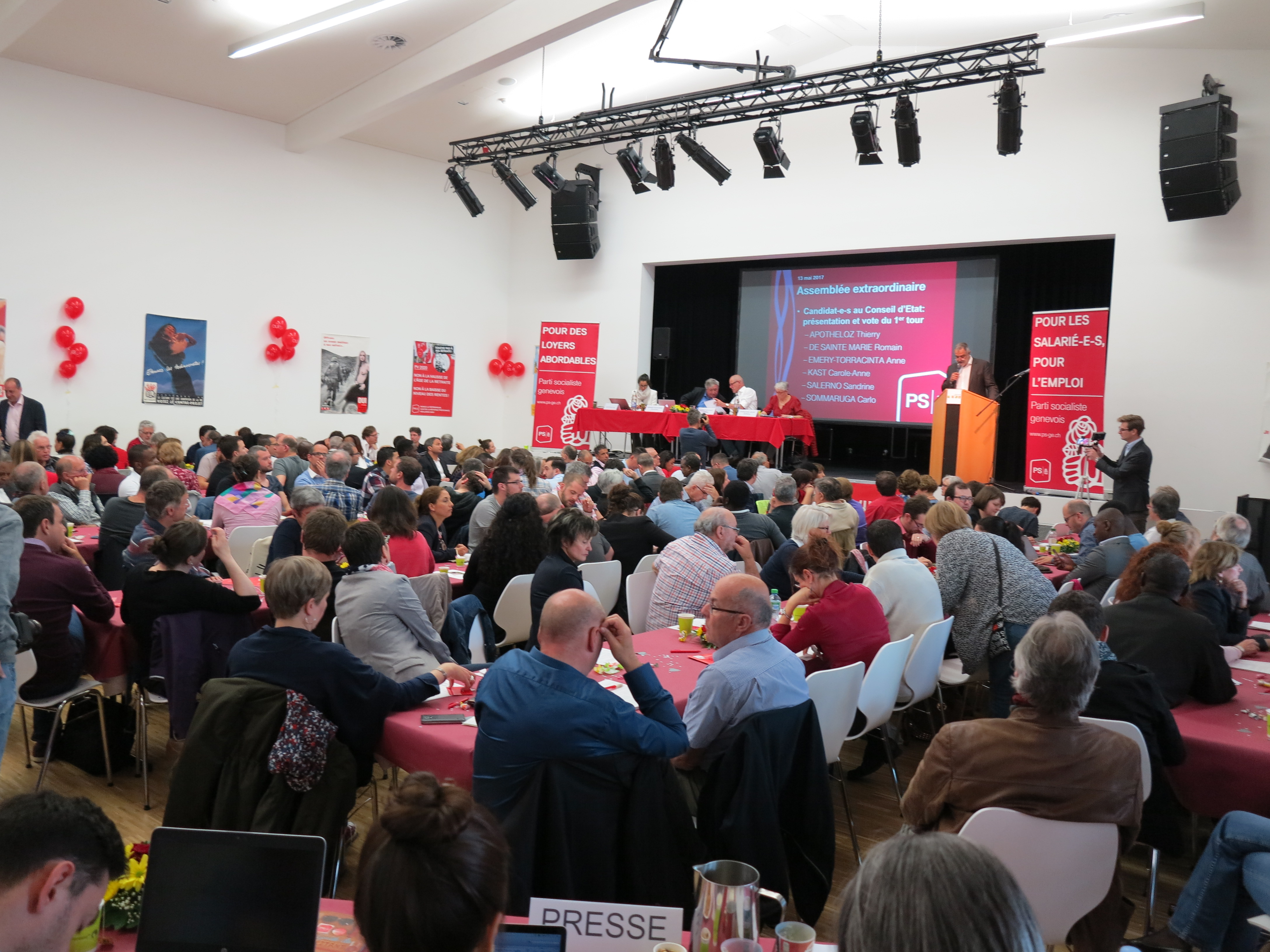 La salle communale du Petit-Lancy était pleine à craquer pour la désignation des candidats au Conseil d'Etat. mpoConseil d’Etat
