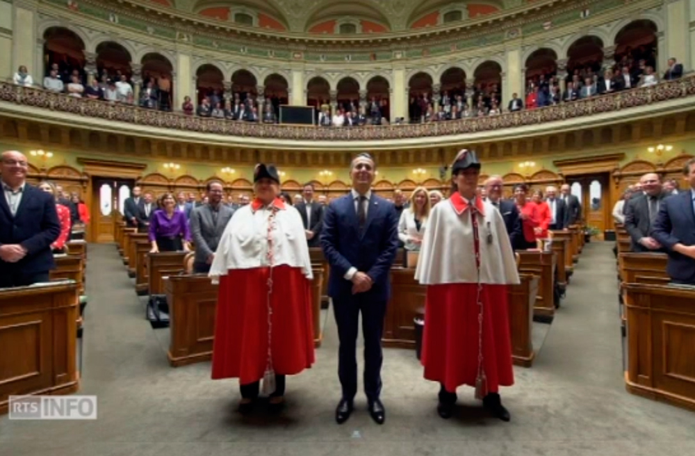 Ignazio Cassis au moment de prêter serment devant l'Assemblée fédérale. Capture d'écran RTSConseil fédéral