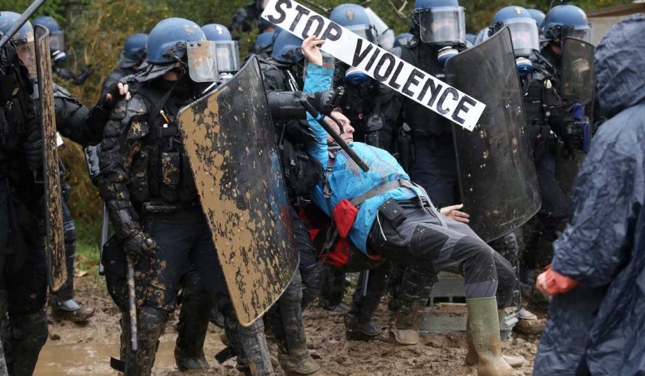 Alors que la contestation sociale s’amplifie sur de nombreux fronts, le gouvernement français a décidé de montrer ses muscles. Dans un déploiement de forces assez ahurissant, plus de 2500 gendarmes ont commencé à évacuer, au cours de la nuit de dimanche à lundi, la «Zone à défendre» (ZAD) de Notre-Dame-des-Landes, à l’ouest du pays. Des milliers de pandores ont ainsi été envoyé déloger une poignée de «squatteurs», qui ont commis le crime de prétendre à une gestion collective de ces terrains agricoles, où était prévue jusqu’à il y a peu la construction d’un aéroport pour remplacer celui de Nantes. Un projet qui a justement été retiré à la suite d’une longue et intense mobilisation populaire pour défendre ces terres.