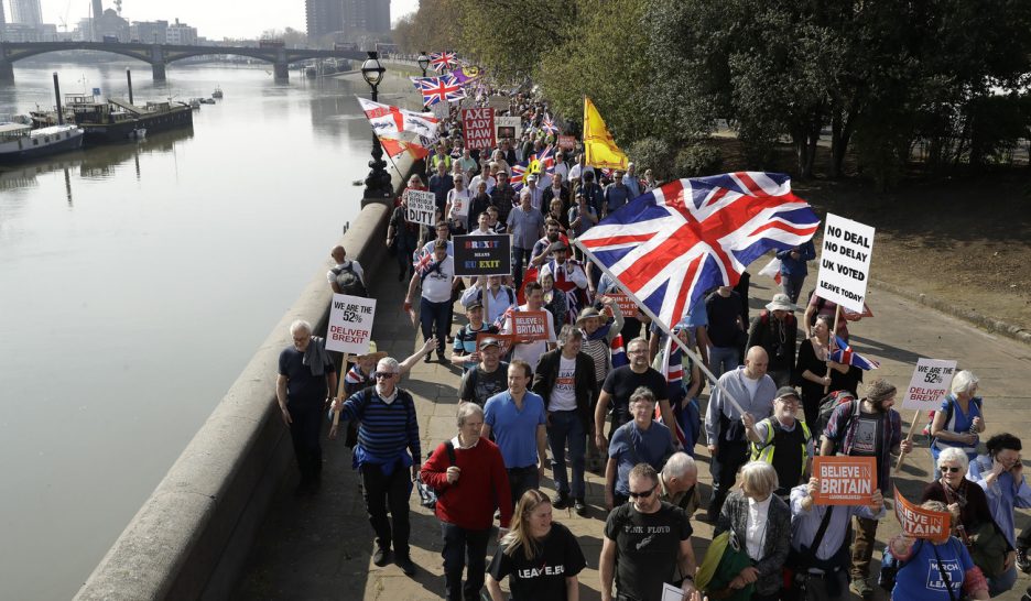 Des supporters du Brexit arrivent à Londres après une marche de protestation qui a débuté le 16 mars à Sunderland, dans le nord-est du pays. KEYSTONEBrexit