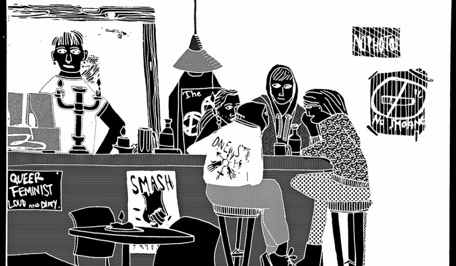 Une femme blonde de 25 ans entre, seule, et s’installe au comptoir pour commander une bière. Les murs sont sombres, l’air froid. Quelques affiches et un graffiti ornent l’espace. «Je me sens bien ici», lâche-t-elle accoudée au bar. Ici? Pas besoin de se frayer un chemin entre des hommes qui monopolisent le comptoir. Pas besoin […]
