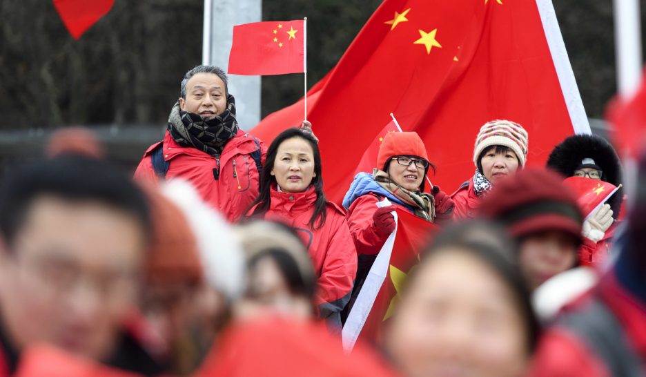 Des Chinois sur la place des Nations, à Genève, en 2017, lors de la visite de leur président Xi Jinping. Pékin envoie des fonctionnaires en Suisse pour identifier des requérants d’asile déboutés. KEYSTONE/PHOTO PRÉTEXTEMigration