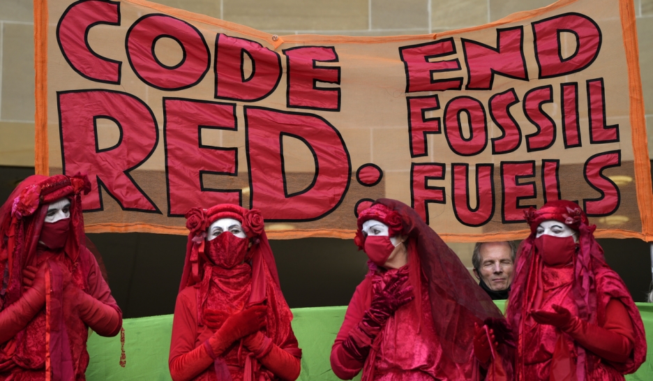 Pour les activistes d'Extinction Rebellion, en démonstration mercredi à Glasgow, les entreprises et les gouvernements font surtout du "greenwashing", autrement dit ne prennent que des engagements de façade. KEYSTONECOP 26