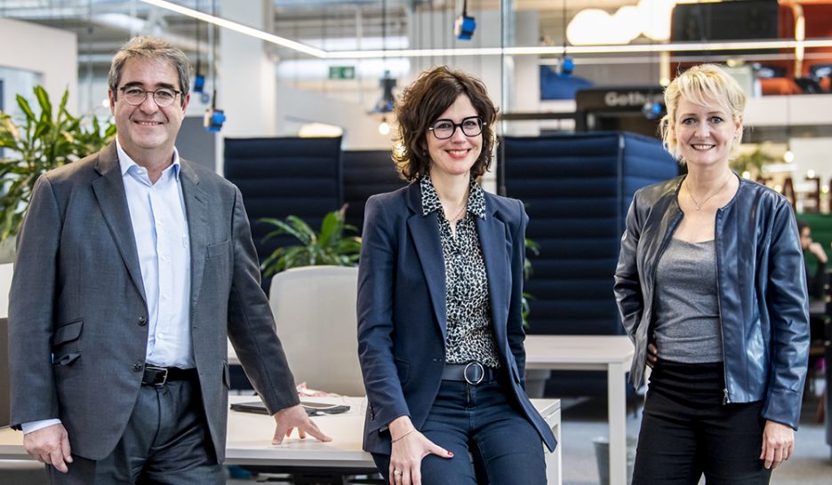 Les trois candidats PLR, Frédéric Borloz, Christelle Luisier, Isabelle Moret, partageront une liste commune avec l'UDC et le Centre. KEYSTONEElections cantonales vaudoises
