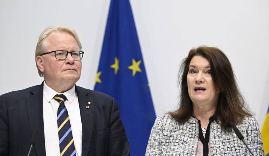 «Notre opinion est que nous ne subirions pas d'attaque militaire conventionnelle en réaction à une éventuelle candidature à l'Otan», a affirmé la ministre suédoise des Affaires étrangères, Ann Linde (aux côté du Ministre de la défense, Peter Hultqvist), lors d'une conférence de presse ce vendredi 13 mai. KEYSTONESuède