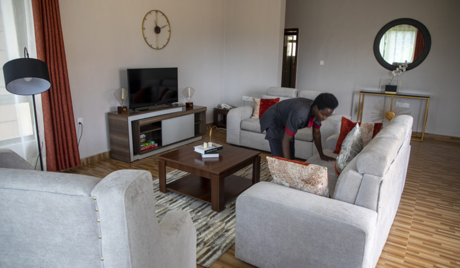 Un employé prépare un salon à Hallmark Residences à Kigali, au Rwanda. C'est l'un des lieux qui devraient héberger les demandeurs d'asile envoyés de Grande-Bretagne, selon un accord qui révolte les organisations humanitaires. KEYSTONEMigration