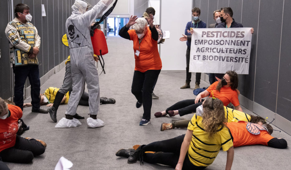 De nombreuses organisations de défense de l'environnement estiment insuffisantes les mesures prises à Montréal, alors que 75% des écosystèmes mondiaux sont altérés par l'activité humaine et que plus d'un million d'espèces sont menacées de disparition. Photo: une action de Wilderness Committee le 8 décembre dernier durant la COP15. KEYSTONEBiodiversité