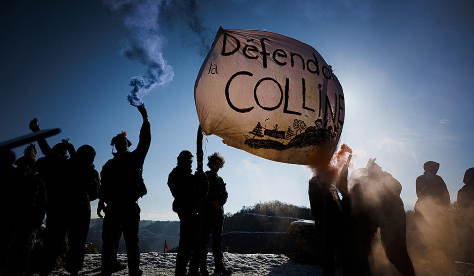 Les défenseur·euses de la colline ont dénoncé des pertes irrémédiables en matière de paysage et biodiversité. KEYSTONE/Valentin FlauraudEnvironnement