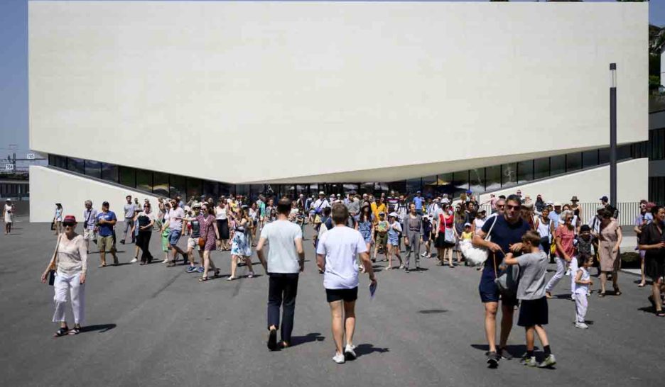 Au pôle muséal de Plateforme 10 (ici lors des portes ouvertes en juin 2022), critiqué pour son manque de fraîcheur, Lausanne prévoit aussi d'installer une fontaine à brumisation et de poser un nouveau revêtement plus clair au sol. KEYSTONEClimat