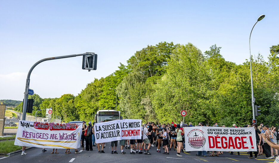 Quelque 120 manifestant·es ont protesté, vendredi soir, contre l’ouverture imminente du Centre fédéral d’asile du Grand-Saconnex. L’occasion de soulever, encore, les cruels manquements de la politique d’asile.