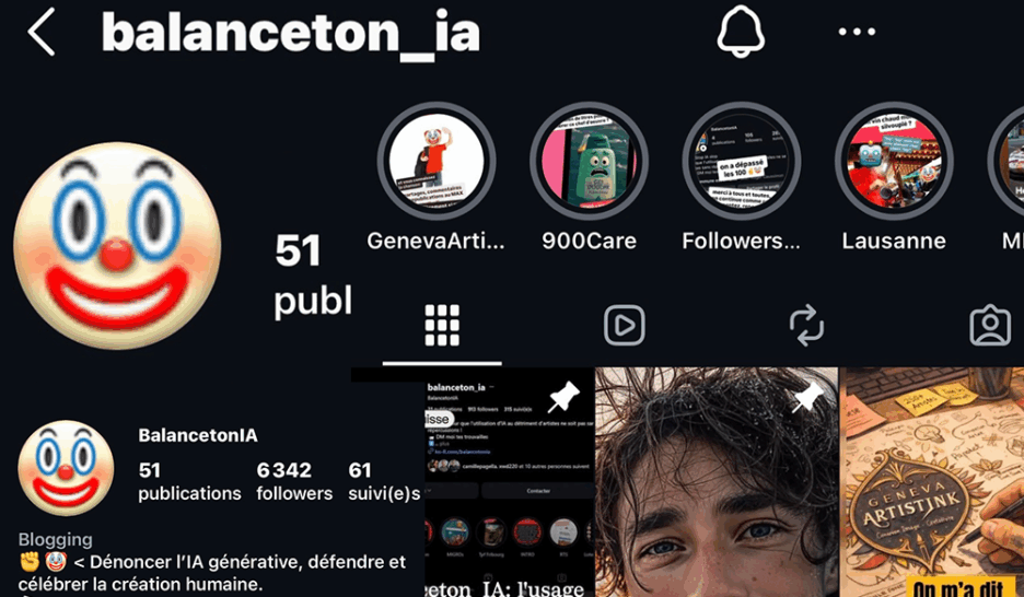 Compte Instagram très suivi en Suisse romande, balanceton_ia recense les usages problématiques de l’IA dans les visuels publics, culturels ou promotionnels