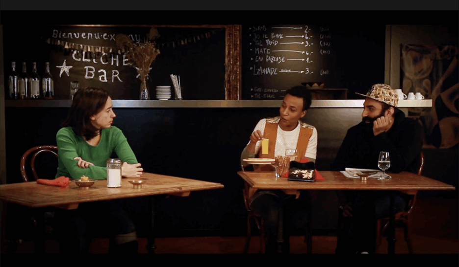 Table de bistrot. Conversation ordinaire. Le court-métrage Clichés renversés déplace le racisme du «loin» vers l’intime et met à nu les imaginaires coloniaux dans le quotidien. LIHUEN GALLIEnjeu