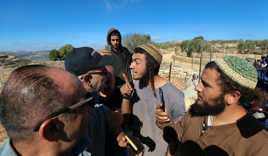 Des colons israéliens affrontent des agriculteurs palestiniens et des militants internationaux, près de la ville de Ramallah, en Cisjordanie,