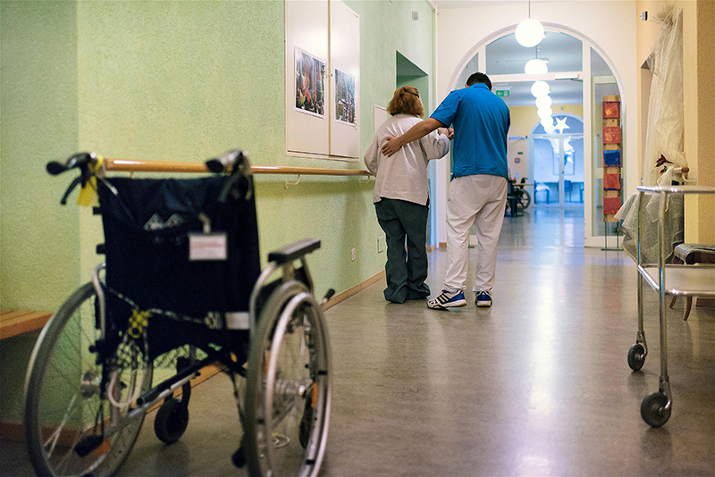Un employé du secteur de la santé, effectuant ici son service civil alternatif, travaille dans le domaine de la kinésithérapie. KEYSTONEService civil