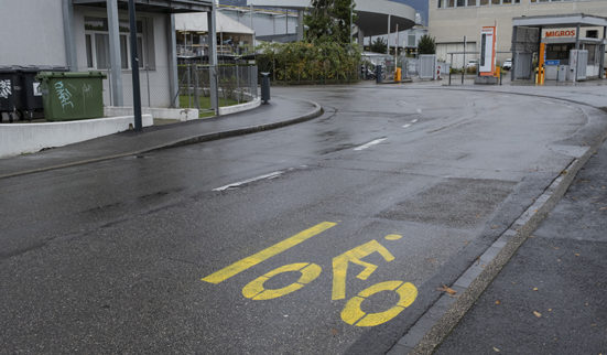 Des militant·es du groupe Extinction Rebellion Genève peignent de fausses pistes cyclables sur des tronçons genevois qui auraient besoin de voies de circulation pour les vélos.