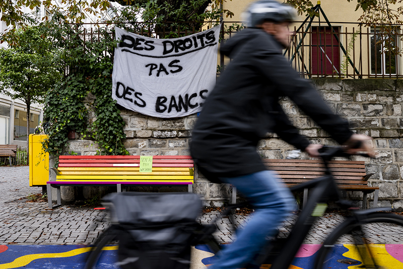 Lausanne inaugure des bancs aux couleurs arc-en-ciel et trans dans le cadre de sa politique LGBTIQ+.